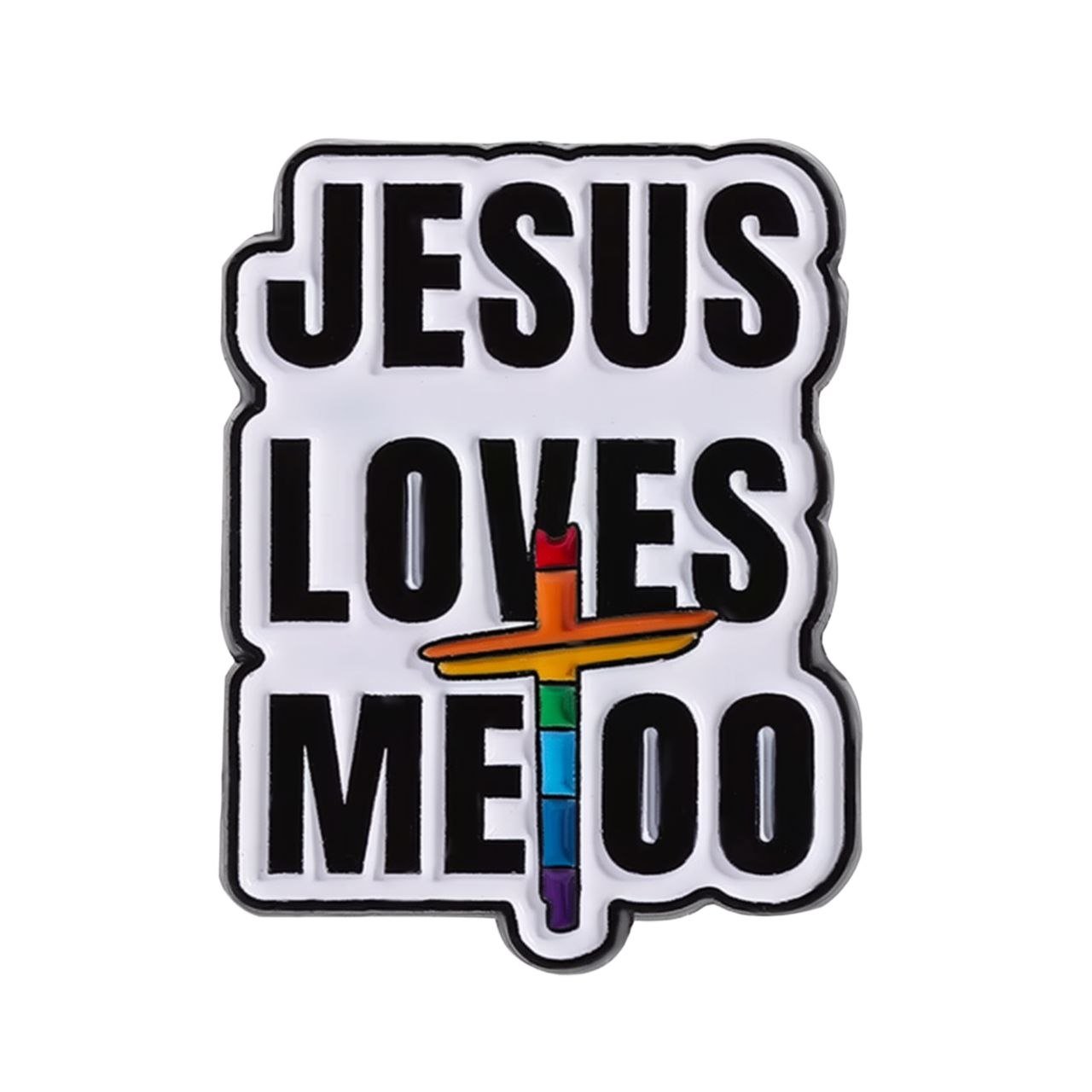 Celebrate faith, love, and inclusivity with this meaningful “Jesus Loves Me Too” Lapel Pin. Featuring bold typography with a subtle rainbow-accented cross, this pin beautifully represents the message that love and acceptance belong to everyone.